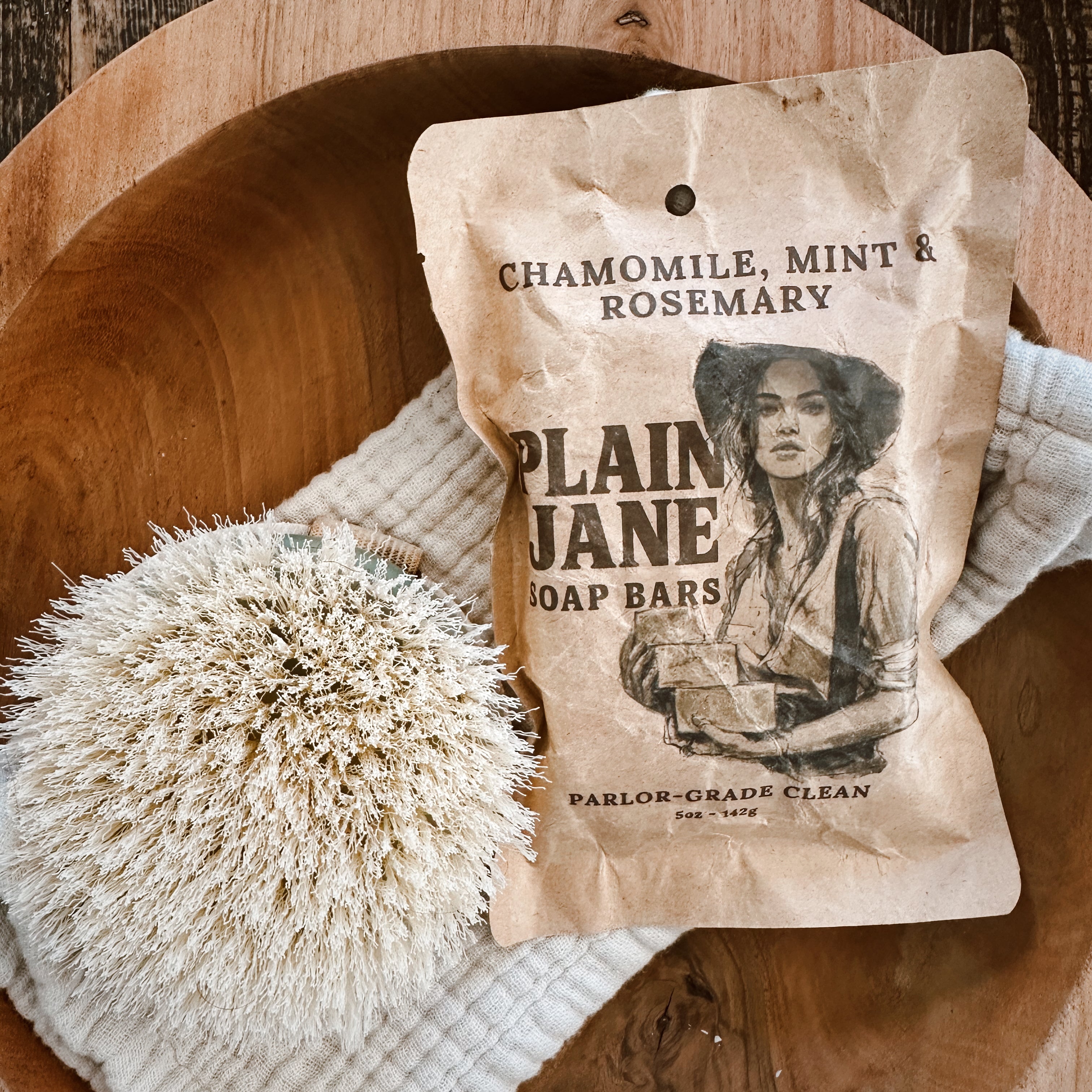 Hand-rendered tallow, pastured lard, fresh creamline buttermilk, sulphur spring water, sodium hydroxide (lye), chamomile-infused jojoba oil, French green clay, green leaf indigo, spearmint essential oil, rosemary essential oil.